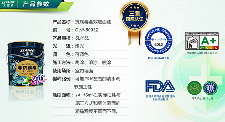 大寶抗病毒全效墻面漆,采用鋅離子黑科技,強(qiáng)效滅殺生活中常見的3+5+8種病毒、細(xì)菌和霉菌,大幅降低細(xì)菌傳播及感染風(fēng)險。同時兼具耐擦洗、強(qiáng)效抗堿、凈味環(huán)保等多重墻面漆功能,大寶超強(qiáng)“鋅”生力,用專業(yè)和愛為家人筑起健康防護(hù)墻。