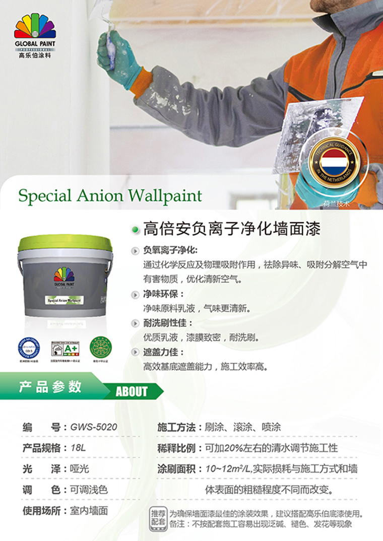 荷蘭高樂伯涂料秉承歐洲企業“專業、環?!钡睦砟睿诤商m技術支持下,開發具負離子功能的墻面漆,通過物理吸附、凈化作用,能減少裝修污染帶來的危害,為家人打造更健康宜居的環境。