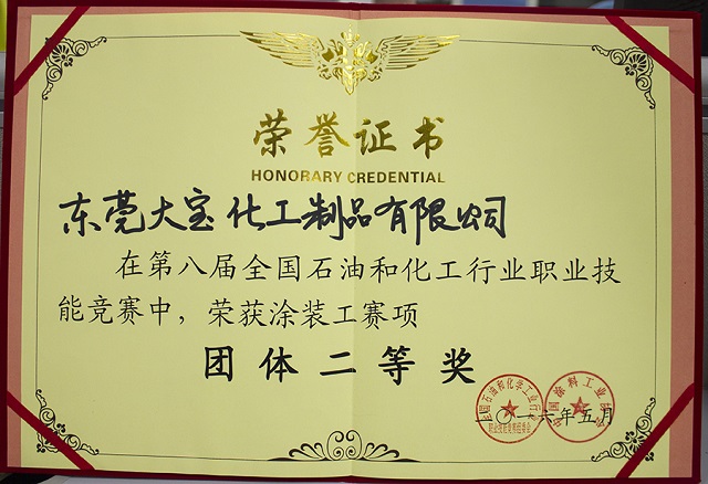 會議上表彰了一批十年來在推動中國水性木器涂料產業化進程中做出特殊貢獻的企業和個人,大寶漆除了獲得“中國水性木器涂料發展特別貢獻獎”外,由大寶化工技術部林進輝等人撰寫的《水性木器涂料在家具涂裝領域的干燥解決方案》和《自交聯丙烯酸酯乳液在水性木器封閉底漆中的應用研究》還分別榮獲本次論文評選一等獎和優秀獎,大寶漆還奪得了“全國水性涂裝職業技能大賽團體二等獎”,而大寶化工工程師周光偉先生憑借多年水性涂裝經驗和精湛的技術榮獲“全國石油和化工行業技術能手”的榮譽稱號。