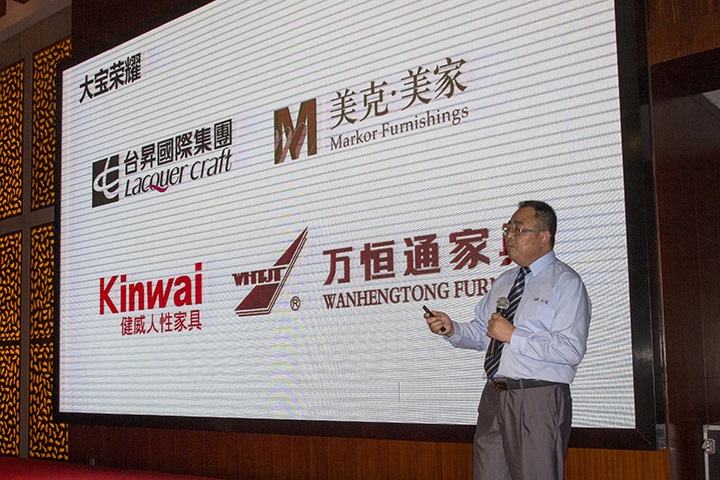 隨后大寶漆工程部培訓中心校長黃文敏向大會作主題為“大寶漆智能涂裝運營”的演講。黃校長在詳細介紹大寶漆智能涂裝測試線功能特點的同時,重點結合大寶水性木器漆產品特點講述了產品與涂裝設備間的配合關系,兩者相輔相成將會為家具行業“油改水”之需求作出生產變革。此外,演講還針對水性家具漆普遍存在的木材漲筋、浮色、干燥慢等六大重點、難點問題,分別給出了可靠而實用的解決方案,受到家具廠老板的高度關注。