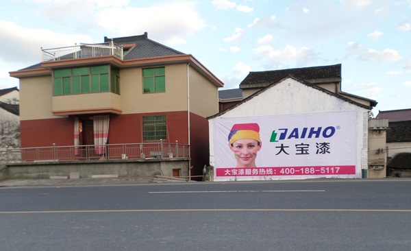 鄉鎮主干道人流集散、客流量多,關注度高,相信在為期一年的時間里,大寶漆墻體、路牌廣告必定以其獨特的形象引來人們關注的目光,大寶漆品牌形象將更加深入人心,大寶漆品牌推廣也將邁上更高的臺階。