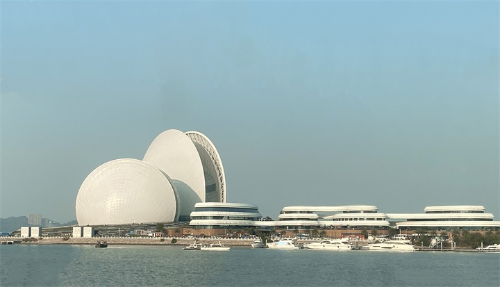 在餐廳用餐后,大家便前往珠海日月貝歌劇院。日月貝歌劇院是中國唯一建設在海島上的歌劇院,坐落于珠海情侶路野貍島海濱。大劇院建筑方案的創作構思源于大海,用地總體布局形似從海中升起的美麗魚鰭烘托著純凈的雙貝造型,形成“珠生于貝,貝生于?!钡囊饩?。在這里,大家或在拍照留念,或坐在陰涼處欣賞美景。
