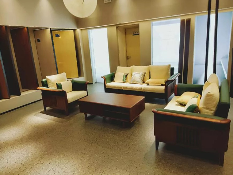 此區(qū)有面與面交疊的色板產(chǎn)生的空間立體感,在燈光的渲染下,產(chǎn)生特有的節(jié)奏和韻律,滲透出寫(xiě)意之感,置身其中洽談業(yè)務(wù)、尋找靈感再適合不過(guò)了!