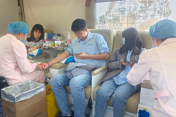 上午9時,東莞市血液中心獻(xiàn)血車準(zhǔn)時到來,在醫(yī)務(wù)人員的指導(dǎo)下,員工認(rèn)真填寫獻(xiàn)血登記表,測血壓、抽血化驗(yàn)等前期準(zhǔn)備工作,經(jīng)血液檢驗(yàn)合格后開始無償獻(xiàn)血,整個獻(xiàn)血過程有條不紊、秩序井然。