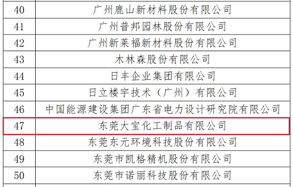 國家知識產權局公布2023年度國家知識產權優(yōu)勢企業(yè)和示范企業(yè)評定結果,東莞大寶化工獲評“國家知識產權示范企業(yè)”。