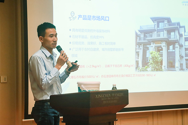 來自云南的龔向春分享了仿石漆市場推廣經驗。他結合云南地區(qū)的實際情況,詳細介紹了仿石漆在市場推廣中的策略、方法和取得的成果,為與會嘉賓提供了寶貴的市場推廣經驗和啟示。