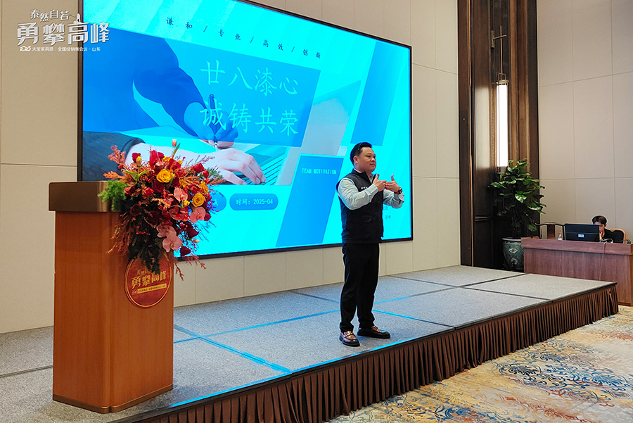 經(jīng)銷事業(yè)部副總經(jīng)理葉子琛在開場致辭中指出,當(dāng)下市場如同風(fēng)云驟變、波濤洶涌,唯有保持“泰然自若”的心態(tài),方能穩(wěn)中求進(jìn)、應(yīng)變致勝。“勇攀高峰”不僅是一句口號,更是一種從容進(jìn)取、不懼挑戰(zhàn)的精神指引。