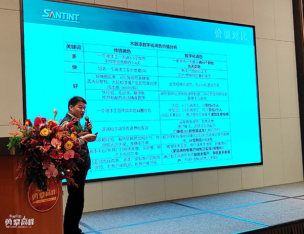 緊隨其后,三華科技吳總以數(shù)字化調(diào)色系統(tǒng)展示色彩科技的力量,以AI與數(shù)據(jù)精確掌控個(gè)性化需求,為家具漆調(diào)色系統(tǒng)賦予更多可能。