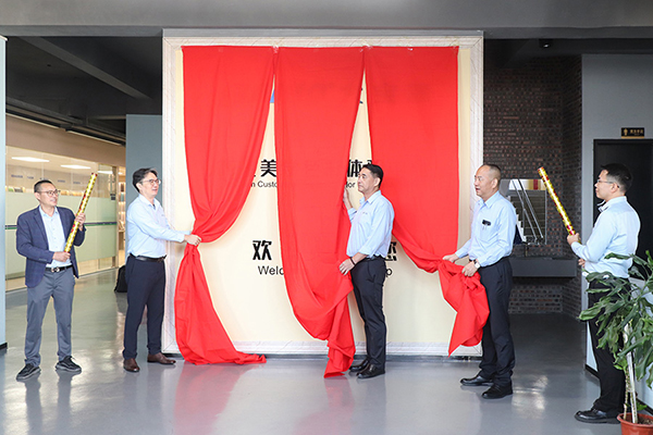 活動伊始,在全體與會人員的共同期待下,張正賢總經理、周志鴻副總經理與葉小兵營銷總監共同為全新展廳揭幕。