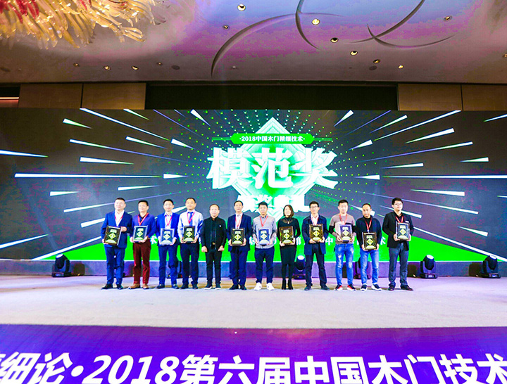 大寶漆榮獲木門精細技術(shù)模范獎(左一謝偉代表領(lǐng)獎)