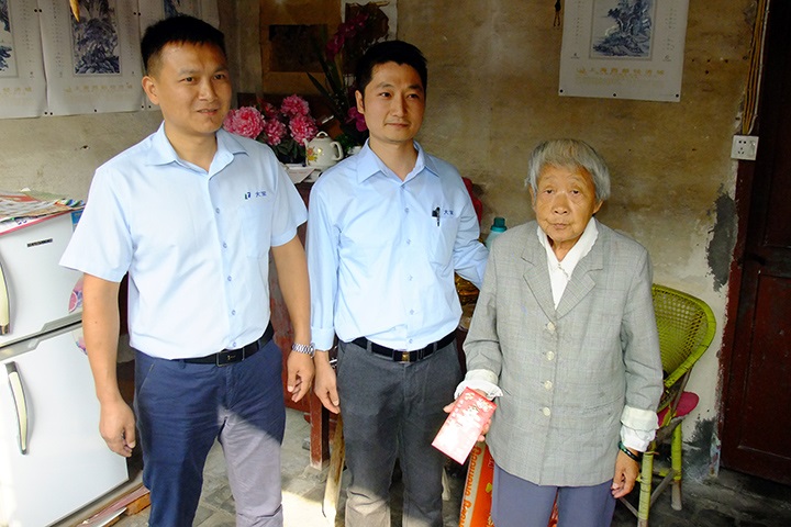 10月17日,農(nóng)歷九月初九,重陽(yáng)節(jié)。因“九九”與“久久”同音,有長(zhǎng)久長(zhǎng)壽的含意,所以,重陽(yáng)節(jié)又是我國(guó)的“老人節(jié)”,歷來(lái)有推行敬老崇孝的活動(dòng)。讓“尊老愛(ài)老”的中華傳統(tǒng)美德不斷得到傳承、發(fā)揚(yáng)光大,弘揚(yáng)尊老敬老的社會(huì)風(fēng)氣,上海大寶化工領(lǐng)導(dǎo)走進(jìn)重固鎮(zhèn)當(dāng)?shù)鼐蠢显海瑸槔先藗兯腿チ斯?jié)日禮物和慰問(wèn)金,送去了溫暖,并向他們致以節(jié)日的祝福。