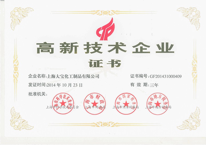 上海大寶在如此外在壓力下,捷報不斷。為了滿足大寶漆“精益求精,專業(yè)服務(wù),致力創(chuàng)新,持續(xù)改善”的宗旨,上海大寶于2011年首次申請并通過了“上海市高新技術(shù)企業(yè)”,并于2017年10月成為上海市第一批公示的高新技術(shù)企業(yè),這是上海大寶繼2011年被認定為高新技術(shù)企業(yè)后第三次順利通過認定;2017年11月完成區(qū)企業(yè)技術(shù)中心復(fù)核工作;此外,也順利獲得“十環(huán)認證”證書。經(jīng)過上海大寶同仁的共同努力,在如此嚴苛的大環(huán)境條件下,上海大寶在2017年才能交出如此亮麗的成績。