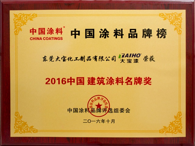 大寶漆憑借其優(yōu)異的產(chǎn)品品質(zhì)和極高的品牌影響力榮膺“中國建筑涂料名牌獎(jiǎng)”和“中國木器涂料名牌獎(jiǎng)”,業(yè)務(wù)部劉國勇副理代表大寶化工出席并領(lǐng)獎(jiǎng)。