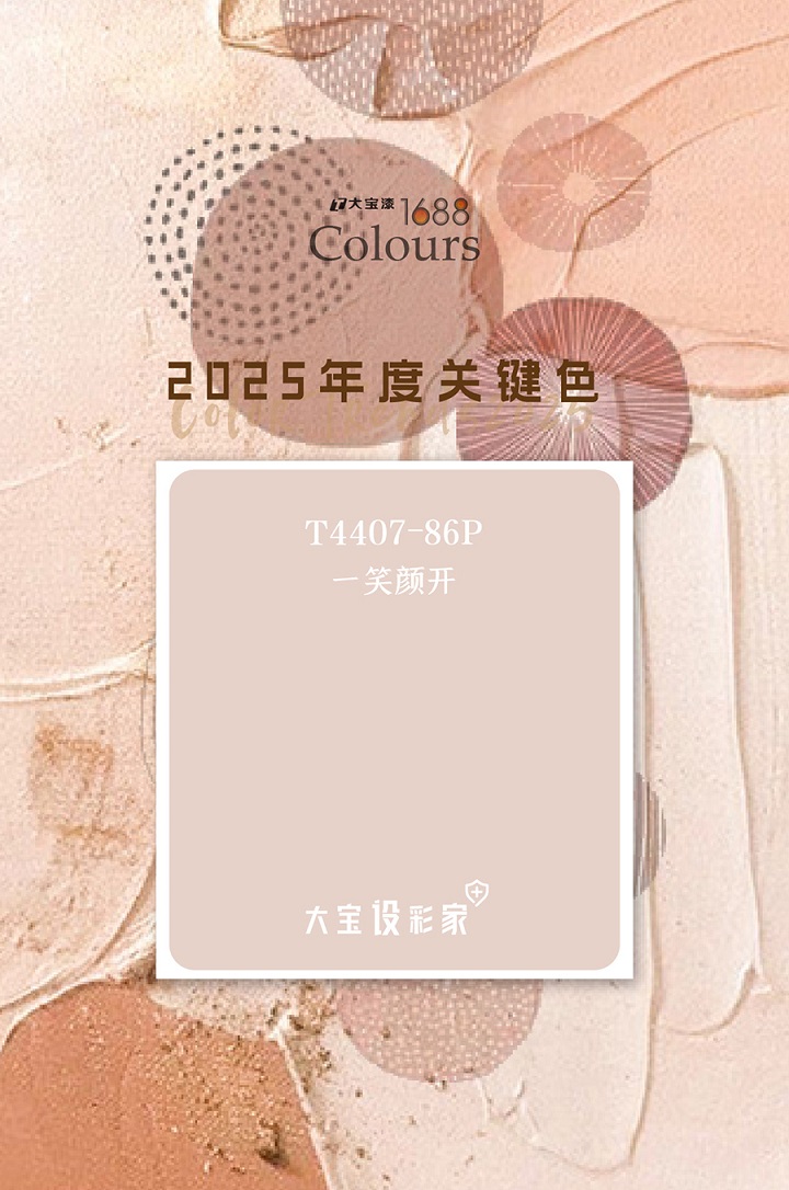 厭倦了一成不變的大白墻?不妨試試讓人一見傾心的粉色系!大寶設(shè)彩家2025年推薦色T4407-86P/一笑顏開(類似藕粉色),以其獨特的柔和質(zhì)感將優(yōu)雅時髦大放異彩,藕粉色是經(jīng)典的中性色,色調(diào)介于粉色與肉色之間,因其加入了灰調(diào),明度降低,仿佛是沙漠中的一抹晚霞,帶著灰紫色的沉靜典雅,又透露著粉色的柔美知性。