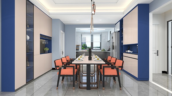 深藍或?qū)毸{與藕粉色對比搭配,展現(xiàn)出視覺沖擊力。藕粉色的溫暖柔和能有效中和藍色的冷調(diào),瞬間讓家居配色與眾不同,凸顯獨特的個性化風格,為空間注入現(xiàn)代感與藝術(shù)氛圍,讓人眼前一亮。