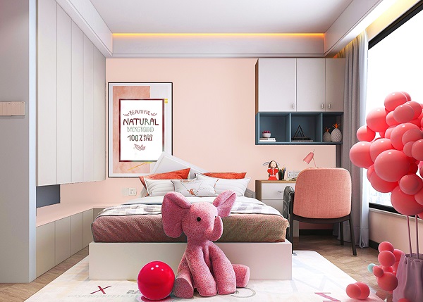 選擇同為暖色調(diào)的橘色或紅色,與藕粉色相互呼應,在自然光照射下,這組合顯得清新明亮,帶有一絲俏皮與浪漫;而當夕陽余暉灑入房間墻面的色彩又流露出沉穩(wěn)與寧靜的氛圍。