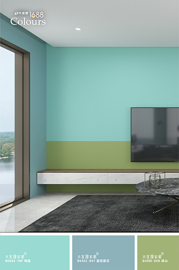 不僅適合打造大面積的墻面背景,也能作為點綴色,用于打造清新視覺焦點。配大寶設彩家推薦的輔助色如絳紅、滄海一栗、裸膚色、藍灰色等低飽和色系,亦可運用漸層疊加或撞色的涂裝方式,打造豐富卻不突兀的空間層次感,為家注入靜謐又富有生命力的夏日氛圍。